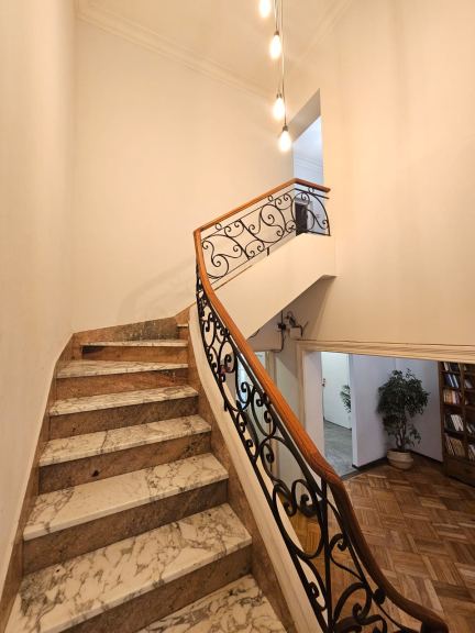 En planta baja, gran escritorio frontal, amplio living comedor, estar diario con churrasquera. cocina independiente. 2 baños, patio de servicio, lavandería independiente, dormitorio y baño de servicio.