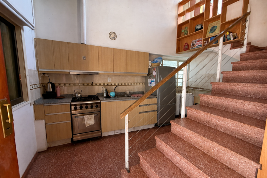 Planta baja: Living comedor con la cocina separada, 1 baño completo, 1 dormitorio amplo y muy cómodo, patio embaldosado con galería y churrasquera, cochera doble.
