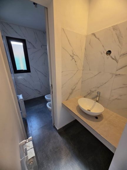 Yeso en paredes y los 2 baños revestidos en su totalidad.
